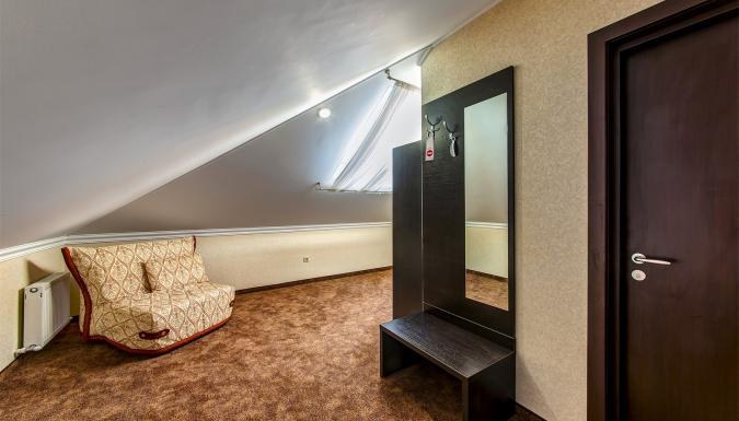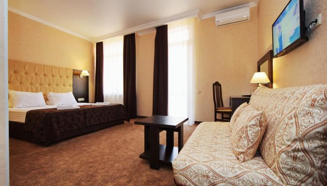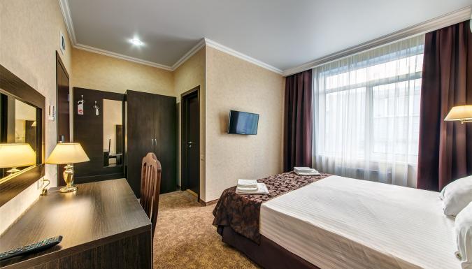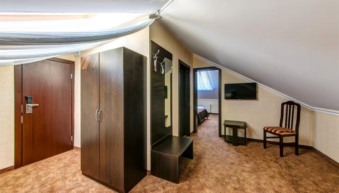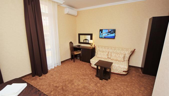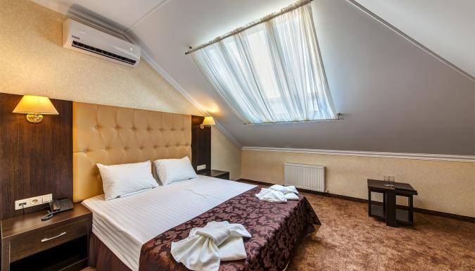 Современный комфортабельный жилой фонд на 46 номеров в европейском стиле. Категории номеров: Стандарт, Стандарт c балконом, Стандарт на мансарде, Стандарт улучшенный, Полулюкс на мансарде, Люкс, Люкс с балконом. Во всех номерах есть набор мебели, сплит-система, сейф и телевизор с плоским экраном. Собственная ванная комната укомплектована феном, тапочками и бесплатными туалетно-косметическими принадлежностями.