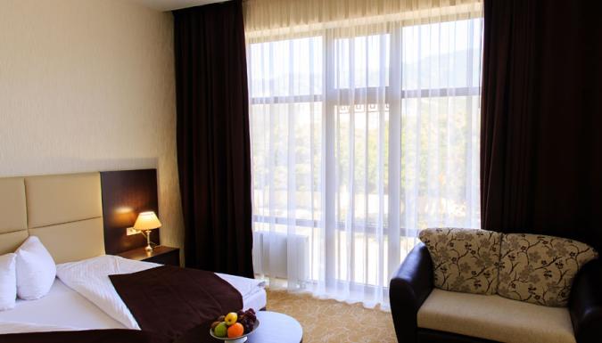К услугам гостей размещение в спроектированных по европейскому стандарту номерах, из окон которых открывается прекрасный панорамный вид на море и горы. Номерной фонд располагает номерами категории Стандарт, Студия и Люкс. Вне зависимости от выбранной категории в номере есть все необходимое для отдыха: ЖК телевизор, электронный замок, сейф, питьевая вода, фен, халат, тапочки, туалетные принадлежности, бесплатный Wi-Fi. В каждом номере располагается двуспальная кровать и дополнительное спальное место.