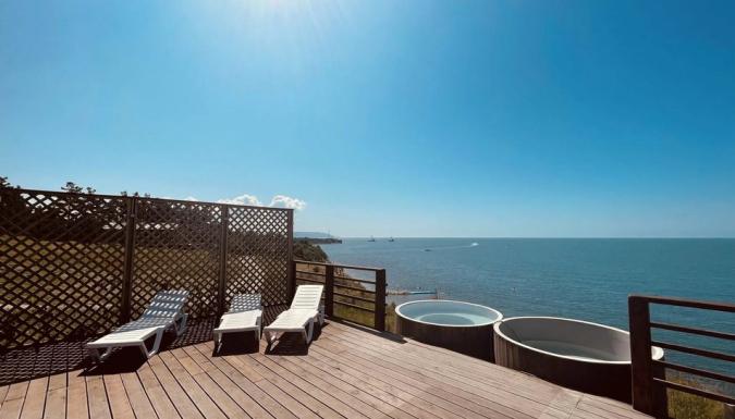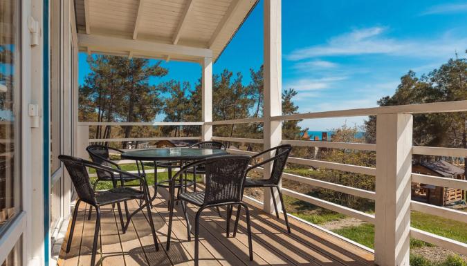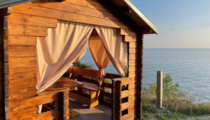 Коттедж 4-комнатный, площадь 57 кв.м., терраса 22 кв.м., вид на море. Максимальное размещение 6 человек + 1 доп.место. 3 отдельные комнаты + кухня-гостиная. 3 спальни с двуспальными кроватями (1600х2000) в каждой. Раскладной диван (1500х1800); Мини-кухня с варочной панелью, чайником и необходимым набором посуды; Холодильник; ТВ и Интернет; Кондиционер, Отопление; Обеденная группа в коттедже и на террасе; Ванная комната (душ с горячей водой/туалет).