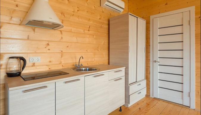 Коттедж Студио, площадь 28 кв.м., терраса 12 кв.м. Максимальное размещение 2 человека + 1 доп.место. Двуспальная кровать (1600х2000); Мини-кухня с варочной панелью, чайником и необходимым набором посуды; Холодильник; ТВ и Интернет; Кондиционер, Отопление; Обеденная группа в коттедже и на террасе; Ванная комната (душ с горячей водой/туалет).