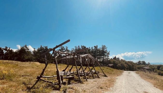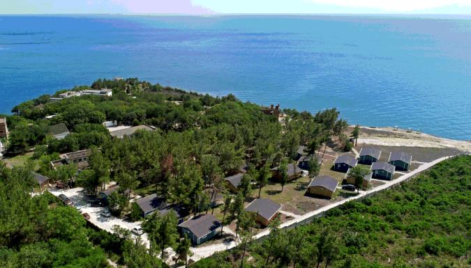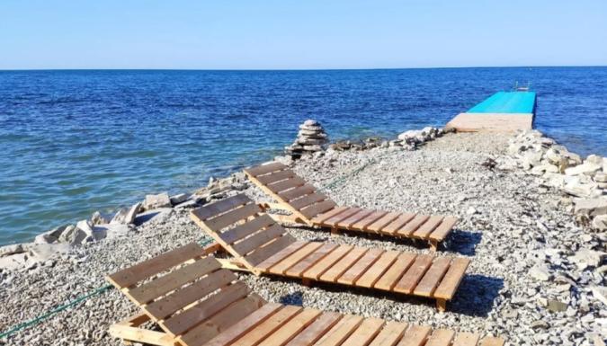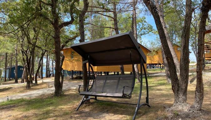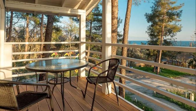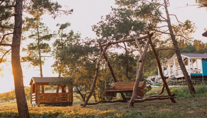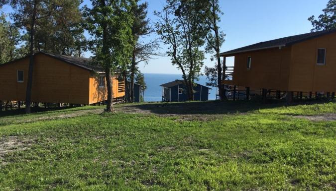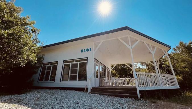На территории: собственный галечный пляж (80 м), русская баня на дровах, кафе, мангальная зона (мангал, сетки в наличии), детские и спортивные площадки, прокат велосипедов. Гостям предоставляется бесплатная охраняемая парковка, бесплатный Wi-Fi на всей территории и трансфер (платный).