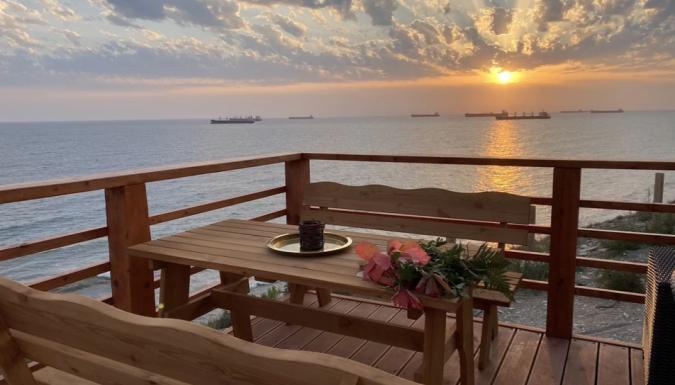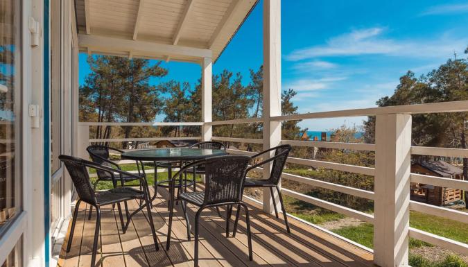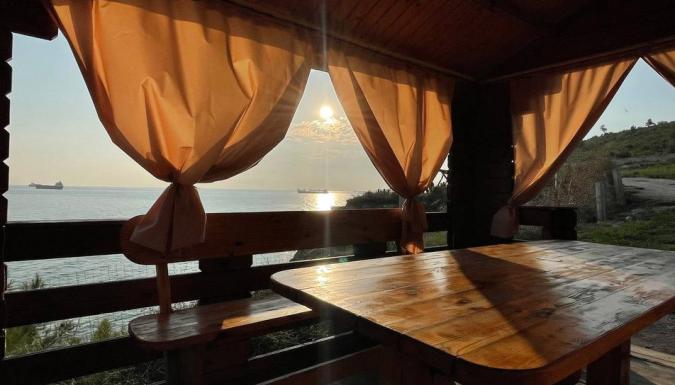 Коттедж 4-комнатный, площадь 57 кв.м., терраса 22 кв.м., вид на море. Максимальное размещение 6 человек + 1 доп.место. 3 отдельные комнаты + кухня-гостиная. 3 спальни с двуспальными кроватями (1600х2000) в каждой. Раскладной диван (1500х1800); Мини-кухня с варочной панелью, чайником и необходимым набором посуды; Холодильник; ТВ и Интернет; Кондиционер, Отопление; Обеденная группа в коттедже и на террасе; Ванная комната (душ с горячей водой/туалет).