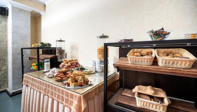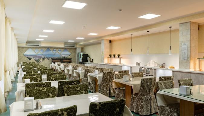 Питание организовано в столовой. В пансионате есть ресторан японской и европейской кухни, бар, кофейня, в которых можно найти большой выбор легких напитков, закусок, фруктов, соков, сладостей. Из бытовых услуг предлагаются стирка одежды. Сотрудники пансионата помогут заказать такси, билеты на концерт, в дельфинарий, океанариум. Людей бизнеса заинтересует конференц-зал, оборудованный кондиционером, большим экраном и мягкими креслами - удачное место для организации различных мероприятий в любое время года.
