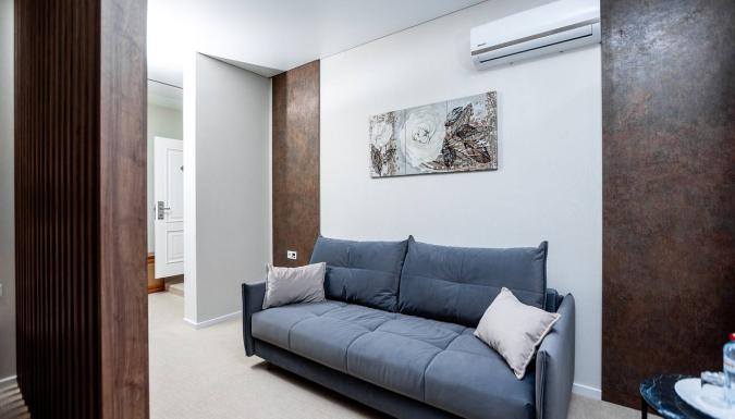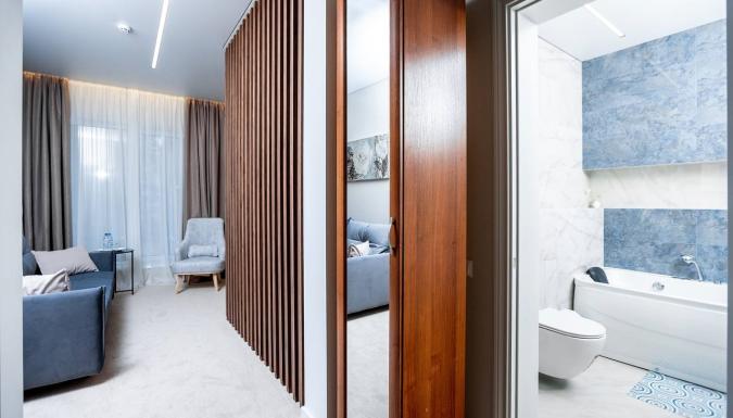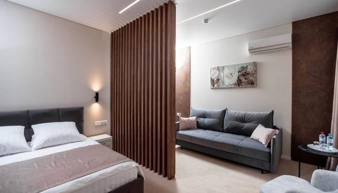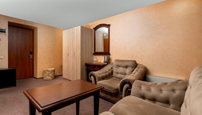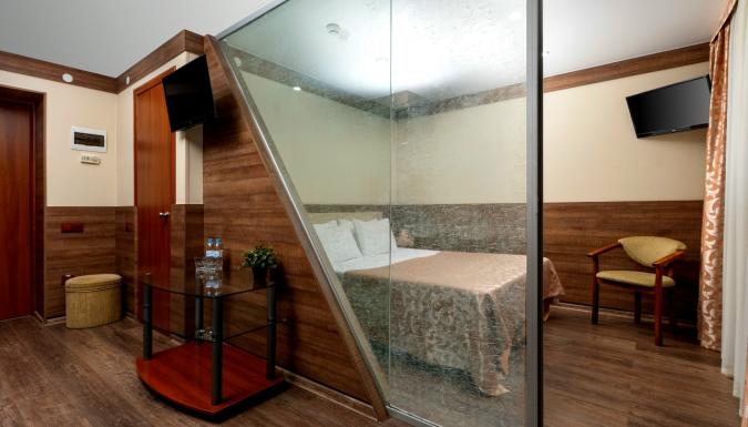 В 4-этажном здании пансионата могут одновременно отдыхать до 150 человек. Жилой фонд пансионата представлен просторными номерами 1 категории, категориями джуниор сюит и люкс. Во всех номерах имеются: набор мебели, телевизор, холодильник (мини-бар), телефон, кондиционер, фен, кабельное и спутниковое телевидение.