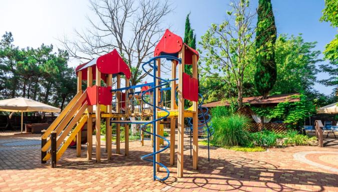 Обустроенная игровая площадка, закрытый батут, игровая комната