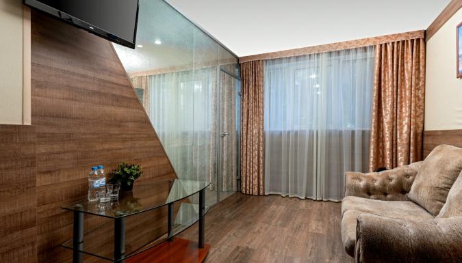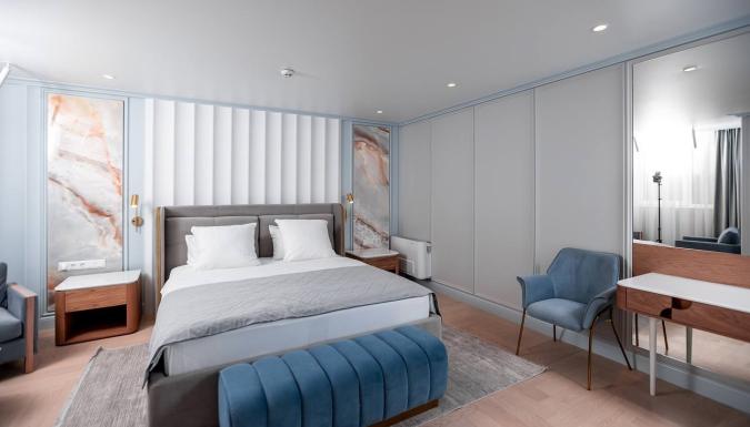 В 4-этажном здании пансионата могут одновременно отдыхать до 150 человек. Жилой фонд пансионата представлен просторными номерами 1 категории, категориями джуниор сюит и люкс. Во всех номерах имеются: набор мебели, телевизор, холодильник (мини-бар), телефон, кондиционер, фен, кабельное и спутниковое телевидение.