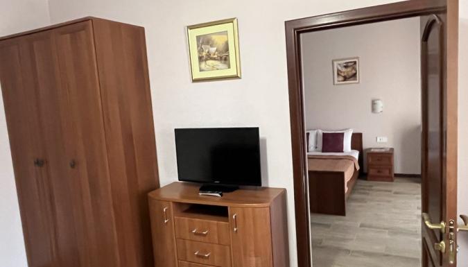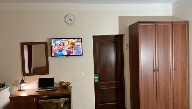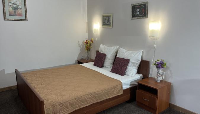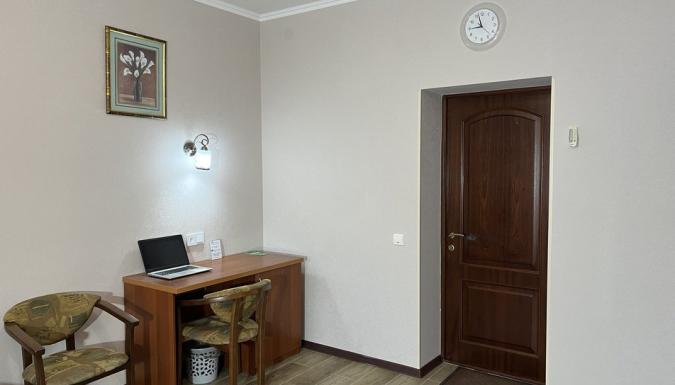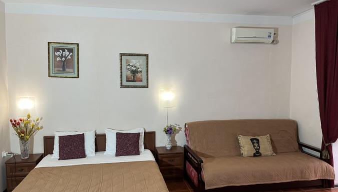 В гостевом доме 14 комфортабельных номеров. Все номера оснащены туалетными комнатами (туалет, умывальник, душевая кабина), телевизорами, холодильниками и кондиционерами. Холодная и горячая вода круглосуточно. Гостевой дом располагает автономной системой холодного и горячего водоснабжения.