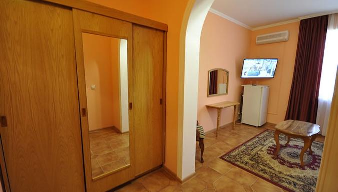 Во всех номерах имеются: жк-телевизор, кондиционер, холодильник, санузел с ванной или душевой, шкаф-купе, прикроватные тумбочки, зеркало, пуфик, столик. Утюг и гладильная доска — доступны на этаже. Чайник и фен — предоставляются по запросу.