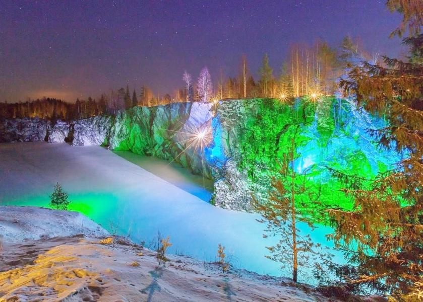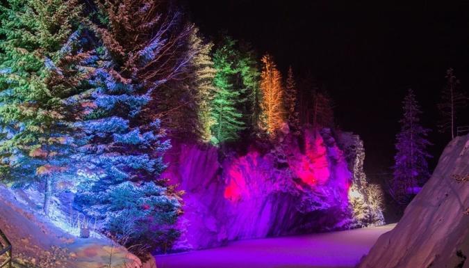 Посещение мраморного каньона Рускеала. Вас ждет пешеходная прогулка по парку: отвесные берега мраморных озер с прозрачной водой в красивейшей чаше из рускеальского мрамора с оборудованными смотровыми площадками и глубокие штольни с красивейшей подсветкой не оставят никого равнодушными.