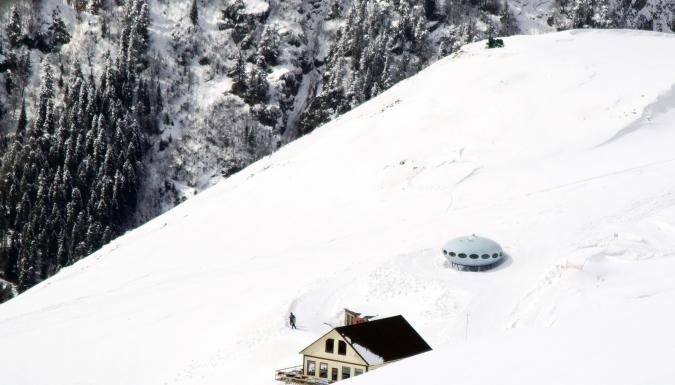 Возвращаемся в альплагерь, где можно покататься на ватрушках, санках и снегоходах (доп.плата) или перекусить в местном кафе.