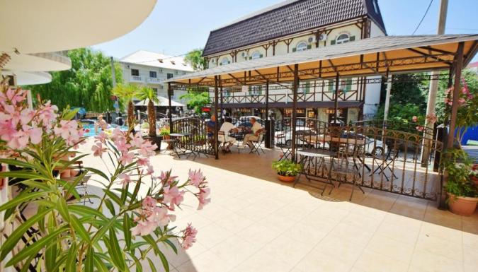 Гостевой дом Нателла в Кабардинке с бассейном, зоной отдыха, мангальной зоной и собственным кафе. До моря 10 минут. Рядом магазины, кафе, столовые, рынок, банк.