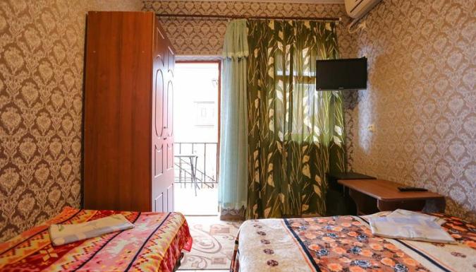 2-х местный стандарт: душ, туалет, кондиционер, холодильник, телевизор в номере. Можно поставить доп место (не в каждый номер, уточнять). Только совместные кровати