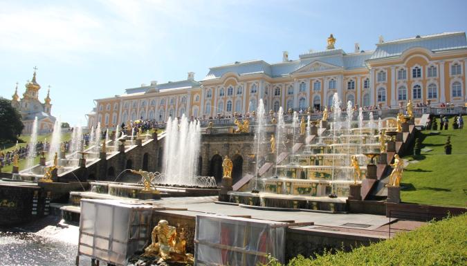 Следующий пункт нашего путешествия — Петергоф. Дворцово-парковый ансамбль с многочисленными фонтанами и статуями античных богов, покрытых золотом. Билеты в парк фонтанов оплачиваются дополнительно.