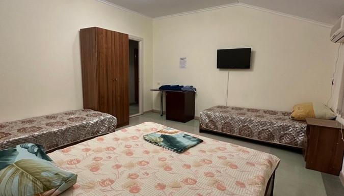 Для проживания гостей предлагаются 2-3-4-местные номера. В каждой комнате установлены кровати, шкафы для хранения одежды, телевизоры, кондиционеры и холодильники. К услугам гостей бесплатный интернет, бассейн с зоной отдыха, открытая охраняемая парковка.