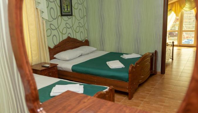 Номер 2-х комнатный 4-х местный: совместная кровать и во второй комнате две раздельные кровати (большая площадь номера)