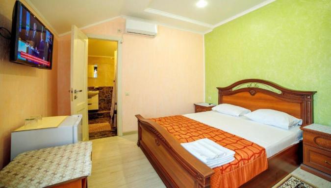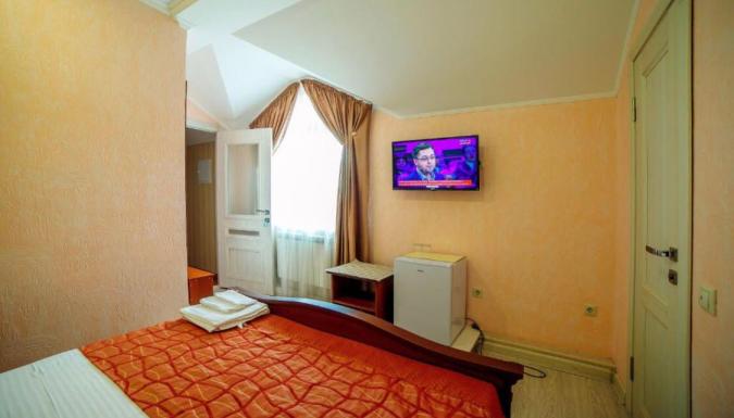 3-х местный: душ, туалет, кондиционер, холодильник, телевизор. Номере кровать или небольшой диван для третьего человека