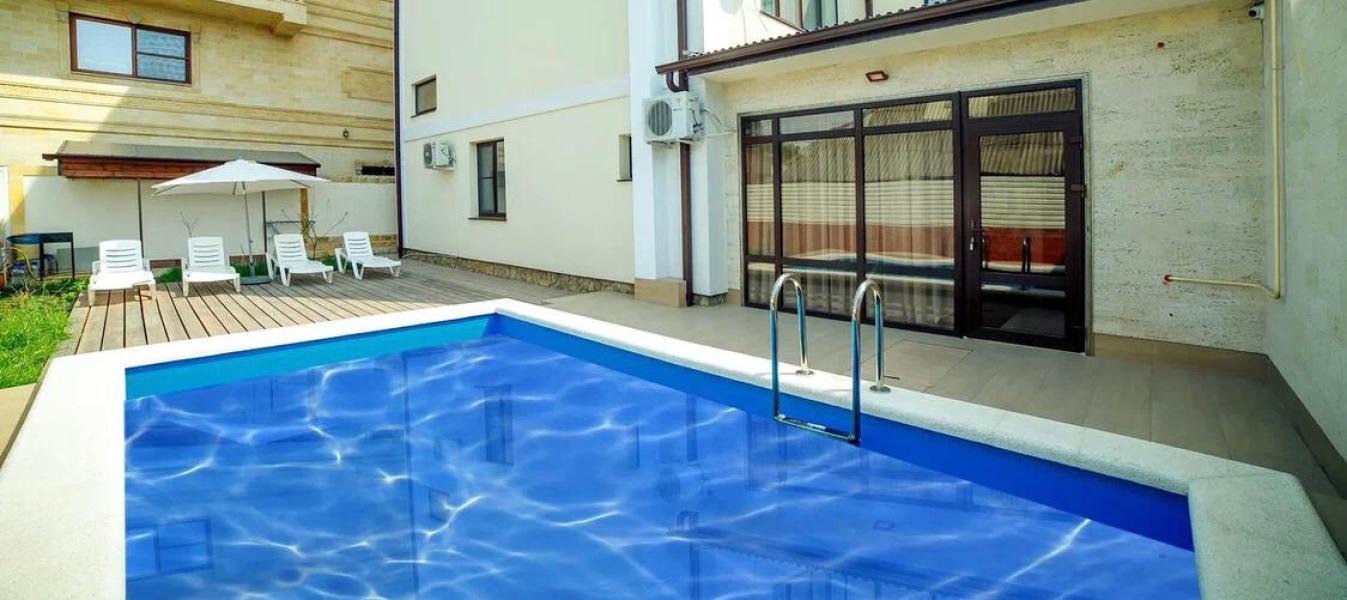 Территория: бассейн с шезлонгами. Утюг и гладильная доска, фен по запросу, стиральная машинка (загрузка за доп плату). Зона для курения.