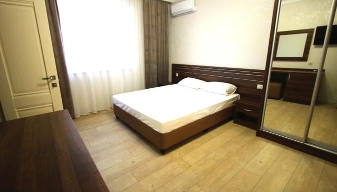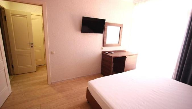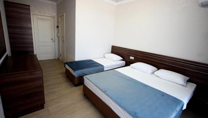 Трехэтажный корпус предлагает гостям комфортабельные просторные номера, каждый из которых рассчитан на 2-5 человек. Во всех номерах предусмотрен санузел с душем, есть кондиционер, телевизор, мини-холодильник, в некоторых комнатах имеются балконы. К услугам отдыхающих — открытый бассейн и небольшая зона для отдыха с шезлонгами. Для гостей на машинах организованы охраняемые парковочные места. - 13