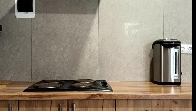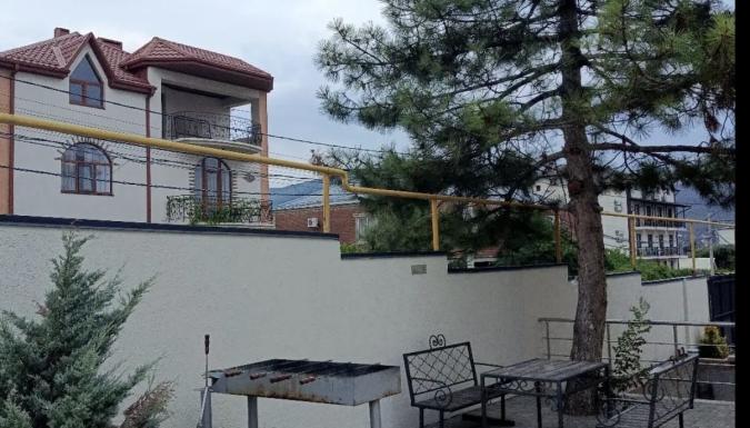 Гости могут готовить самостоятельно: на территории оборудована кухня с плитой, посудой и необходимой бытовой техникой. Также во дворе обустроена зона отдыха с мангалом и просторной террасой.