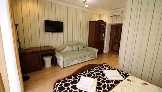 Гостевой дом представляет собой трехэтажный корпус, где гостям предлагаются комфортабельные номера разной вместимости. В каждом номере имеется телевизор, мини-холодильник, установлена сплит-система, доступна сеть wi-fi, а в собственном санузле – душ.