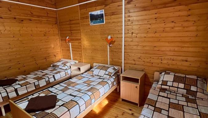 Комплекс занимает благоустроенную закрытую территорию. Двухэтажный деревянный коттедж с просторными террасами и номерами. Номера, рассчитанные на разное число гостей, оснащены все необходимым: везде есть индивидуальный санузел, кондиционер, а также телевизор и холодильник.