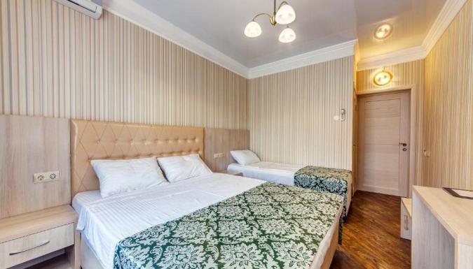 Современный корпус гостевого дома насчитывает 15 номеров, в каждом есть кондиционер, холодильник, в ванной комнате установлен душ и есть набор косметических принадлежностей для каждого гостя.