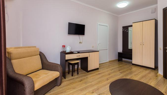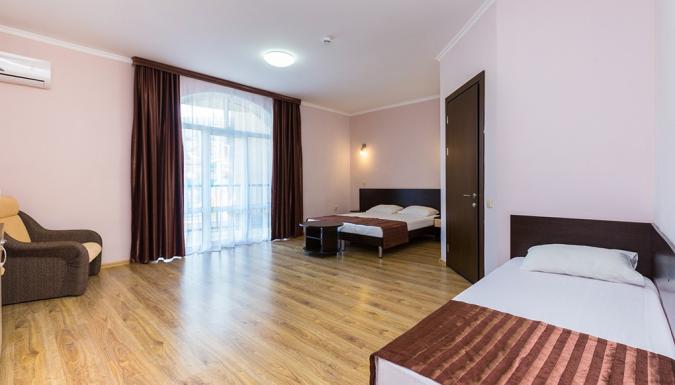 Собственный пляж с зонтиками и шезлонгами расположен в 700 м от пансионата «Фея-3» в Анапе. Есть открытый бассейн, на территории действует детский аквапарк. Также работают аниматоры, которые всегда готовы развлечь вас или вашего ребенка.