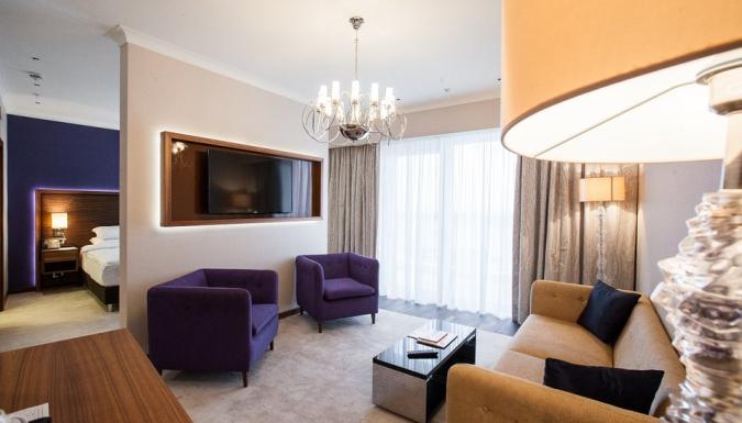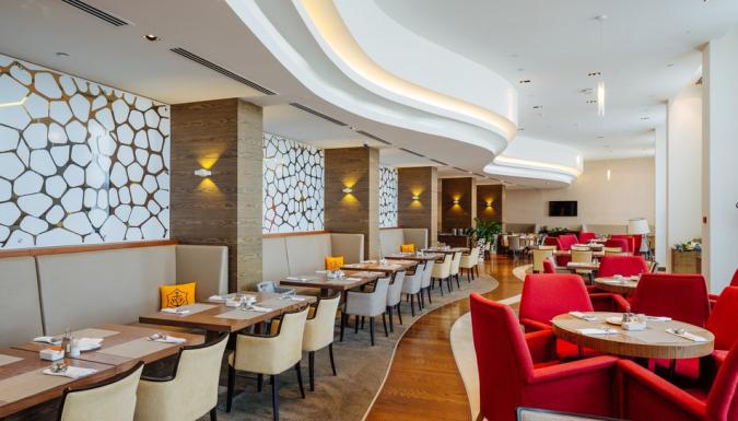 На территории отеля «Альфа Сириус» в Адлере расположен бассейн с подогревом. В отеле есть основной ресторан, специализирующийся на европейской кухне. Детская инфраструктура отеля включает в себя наличие детской зоны в общем бассейне, игровых площадок.