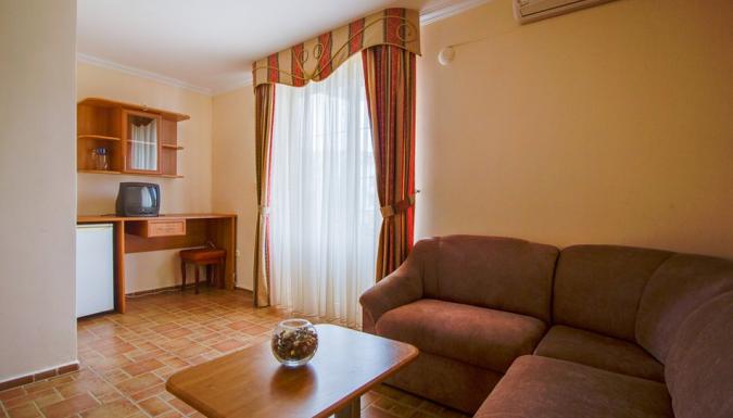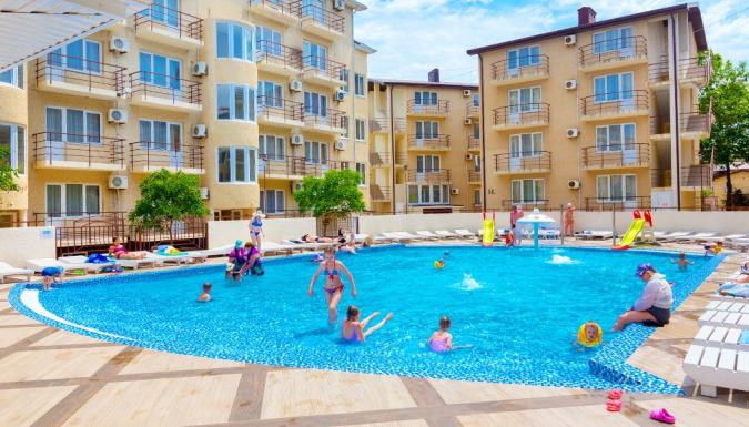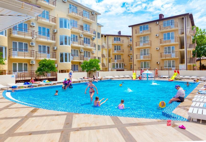 Современные здания пансионата высотой в 3-5 этажей принимают отдыхающих в комфортабельных номерах с уютной обстановкой, удобной мебелью и комплектом бытовой техники. На территории отеля есть несколько бассейнов под открытым небом, кафе и бар.