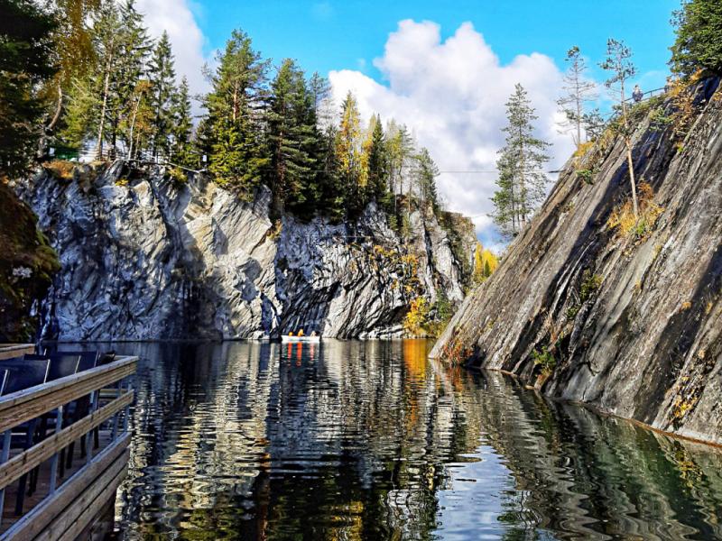 12.30 Переезд в горный парк «Рускеала». Это просторный парк, где можно насладиться красотой мраморного каньона, прогуляться по пещерам, увидеть зеркально чистые озера и водопады. Главной достопримечательностью живописной локации, конечно же, стал мраморный карьер, заполненный грунтовыми водами. Вокруг вас ожидает еще множество красивых мест: бирюзовые воды озёр, хвойный лес, мраморные возвышенности самых разных цветов.