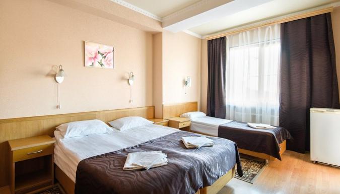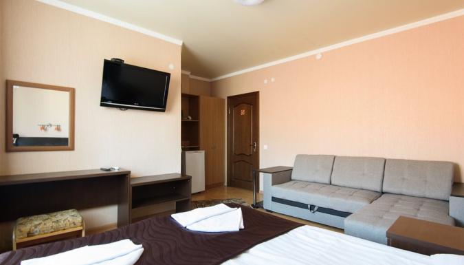 К услугам отдыхающих гостей комфортабельные номера с балконами и без. В каждом номере предусмотрен санузел, установлена сплит-система, есть телевизор, холодильник, доступен безлимитный интернет.