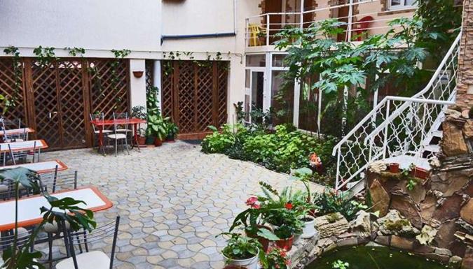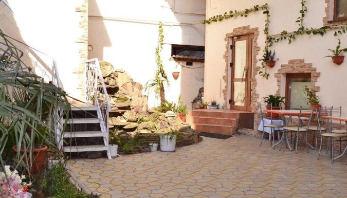 Наличие уютного и зелёного внутреннего дворика, с небольшим искусственным водопадом, где в жаркий день можно переждать полуденное палящее солнце. В зонаx общего доступа на ресепшене и во внутреннем дворике имеется бесплатный доступ в интернет (Wi-Fi). Гладильная доска с утюгом на каждом этаже. В теплое время года на территории гостевого дома работает летняя кухня.