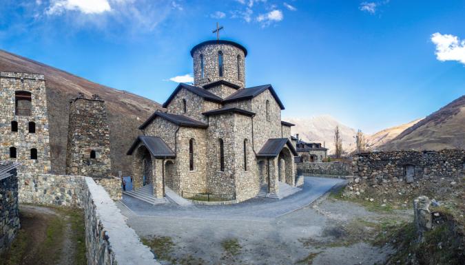 Аланский Свято-Успенский мужской монастырь – самая высокогорная православная обитель в России. Он находится в живописном Куртатинском ущелье Северной Осетии на высоте около 2 тысяч метров и со всех сторон окружён горными вершинами. Монастырь был возведён относительно недавно – в 2004 году, и своим внешним видом напоминает средневековое строение. Его массивные каменные стены и сторожевые башни, которые служат колокольнями, отражают осетинские архитектурные традиции.