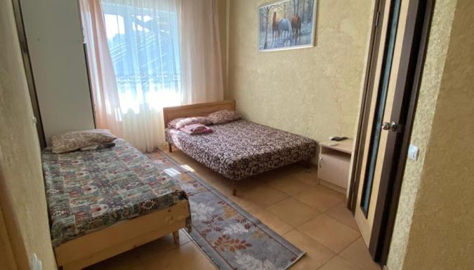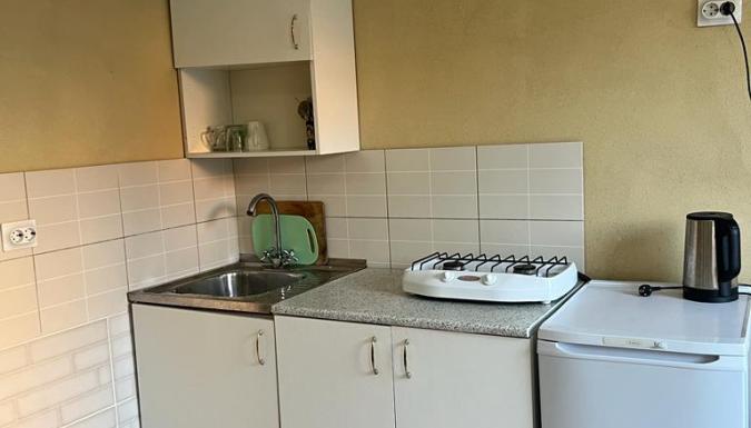 Студия с кухней — душ, туалет, кондиционер, ЖК телевизор, холодильник, кухня, двуспальная кровать + 2 односпальные кровати, посуда, газовая плита, чайник