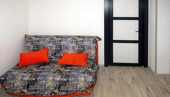 1. в комфортных двухкомнатных номерах на 1 этаже площадью 33 м кв. с удобствами (душ, туалет, умывальник, фен), кондиционером, телевизором, Wi-Fi, холодильником. Номер оборудован микроволновкой, чайником, набором посуды. В одной комнате - двуспальная кровать, во второй–диван-кровать. Номера предлагаются при 2-х, 3-х местном размещении. Возможно и 4-х местное размещение, но при условии проживания 2 взрослых + 2 ребенка с размещением детей на диван-кровати (либо диван-кровать + детская кроватка). Своя небольшая терраса для отдыха с мебелью.