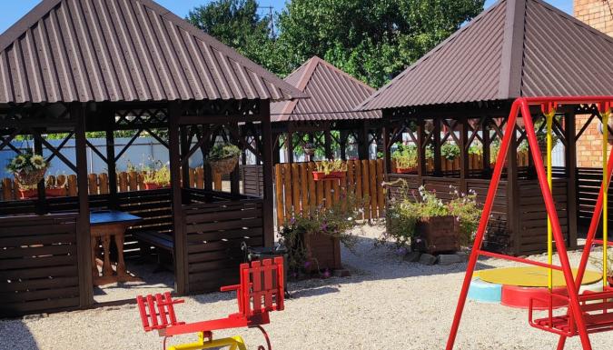 На территории есть общая кухня, мангалы, место для отдыха, беседки, детская площадка.