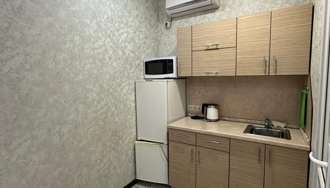 Все номера Гольфстрим в Ейске - квартирного типа со всеми удобствами (туалет, умывальник, душ), тв, холодильник, кондиционер, микроволновая печь.