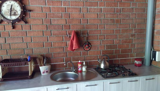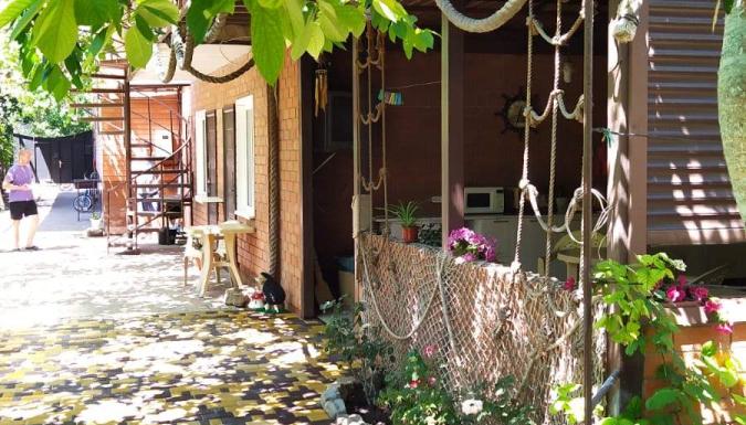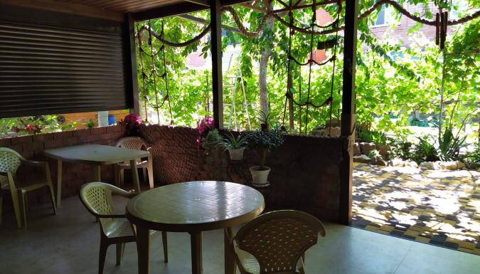 На территории «На Шмидта» есть общая кухня (2 газовые плиты, вся кухонная утварь, микроволновка), зонтики и столики, «живой» навес из винограда для отдыха и приема пищи.