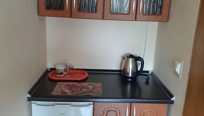 В номерах «На Шмидта» есть все необходимое для отдыха: санузел (туалет, умывальник, душ), ТВ, холодильник, кондиционер, чайник, необходимая мебель, двухспальная кровать.