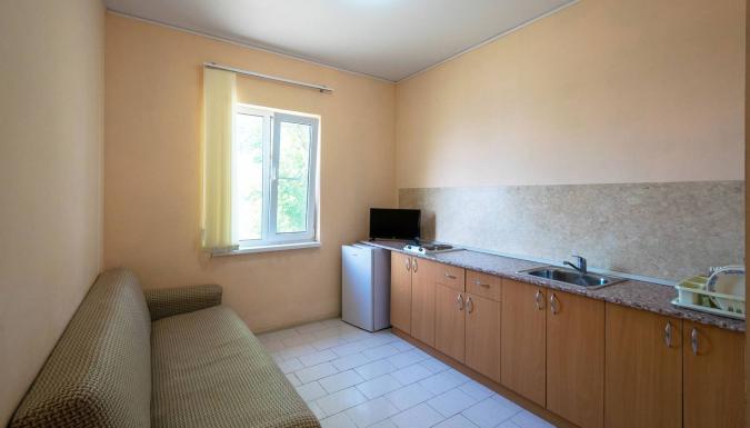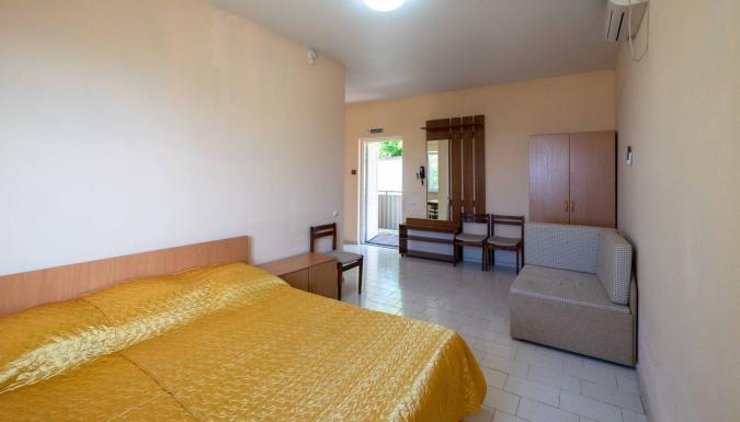 Номерной фонд базы отдыха «Прибой» состоит из 2-х, 3-х, 4-х местных номеров в отдельных коттеджах и финских домиках, укомплектованных мебелью, постельными принадлежностями, сплит-системами, холодильниками, телевизорами.