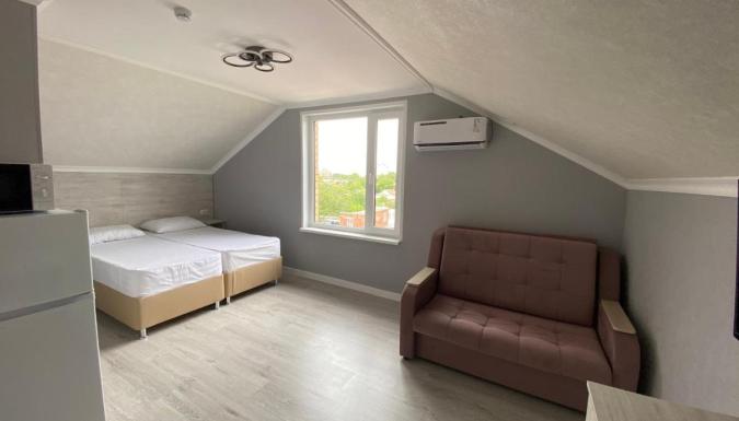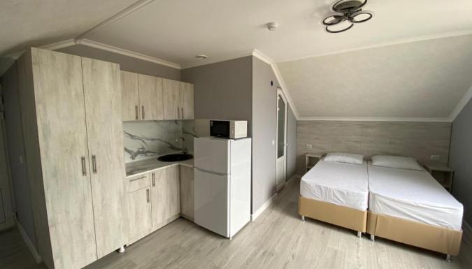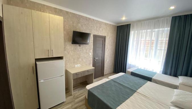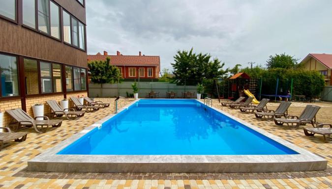 В гостевом доме оборудованы кровати и шкафы для одежды. Так же имеются Wi-Fi, телевизор, есть фен в ванной комнате. В распоряжении гостей находится плавательный бассейн.