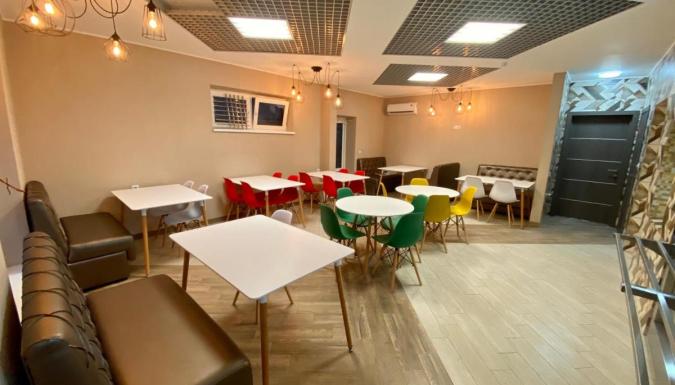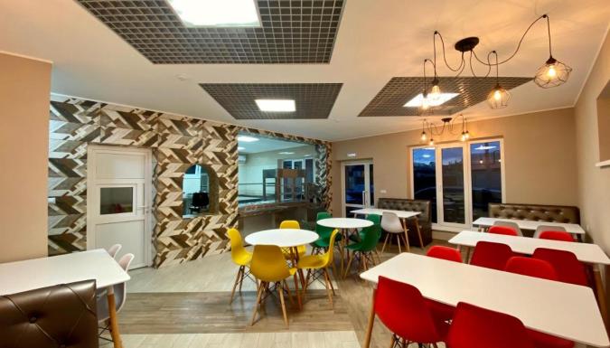 На общей кухни размещаются обеденный стол, посуда, микроволновая печь и кухонная утварь. В номерах установлен холодильник. В шаговой доступности располагается магазин с продуктами.