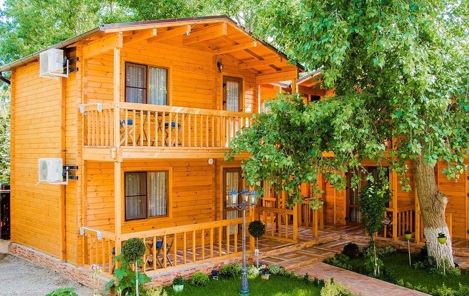 На благоустроенной территории пансионата в 550 метрах от моря разместились три спальных корпуса и несколько коттеджей. На территории работает столовая, в распоряжении гостей сезонный уличный бассейн с детским отделением. Для малышей организована игровая площадка.