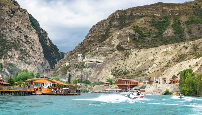 Далее нас ждет катание на катере: мы прокатимся по Чиркейскому водохранилищу