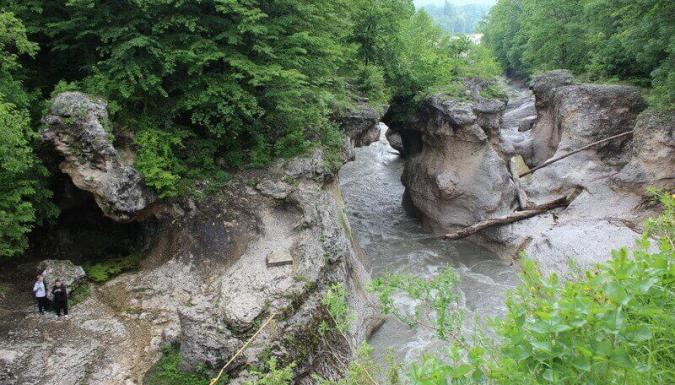 Посещение Хаджохской Теснины - удивительного памятника природы. Глубина ущелья от 20 до 40 метров, длина 400 метров, ширина –всего 2-3 метра. Могучая река Белая, пробиваясь сквозь горные породы, создала этот природный памятник.