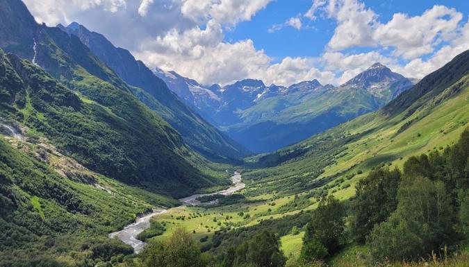 Погружение в удивительный мир Домбая начнется с уникального ущелья Алибек, где зародилась богатая история альпинизма! Путешествие на джипах до альплагеря станет настоящим приключением, а дальше нас ждет восхитительный поход к Алибекскому водопаду, одному из самых живописных уголков этого сказочного края.