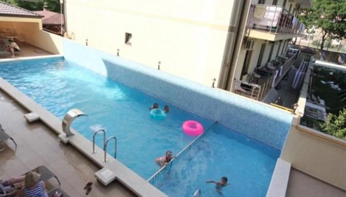 Территория отеля оборудована зоной барбекю, детской площадкой и местами для отдыха. Есть большой бассейн, с детской и взрослой зоной.