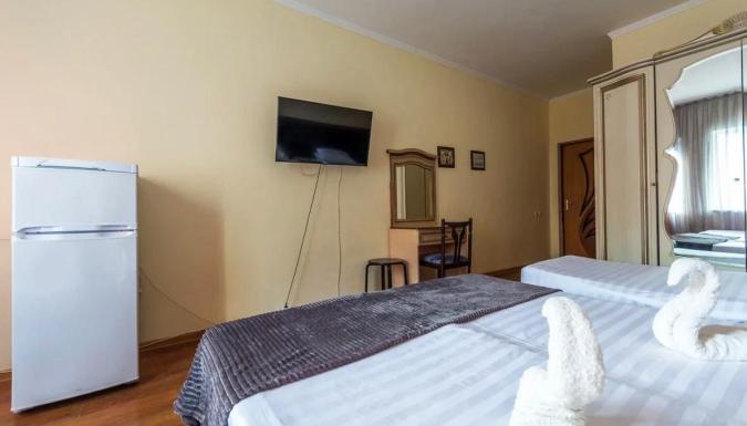 3-х местный: Душ, туалет, кондиционер, холодильник, телевизор. Кровать совместная и диван-книга.