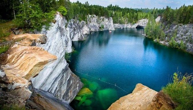 Посещение Рускеальского горного парка. Мраморный каньон - парк создан в 2005 году на базе уникального памятника индустриального наследия России - Рускеальского мраморного карьера. Добыча мрамора была начата здесь в 1769 г по указу Екатерины II для украшения известных сооружений Петербурга: Мраморного дворца, Исаакиевского собора, Мариинского дворца и др.