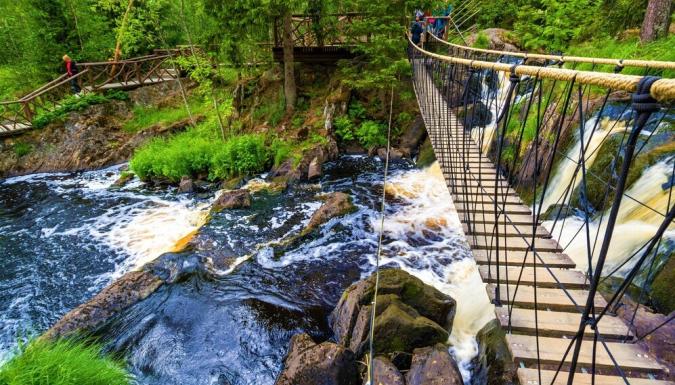 Посещение комплекса «Долина водопадов» (вх.билет доп.плата). Этот парк северной природы в трех часах езды от Питера открыли два года назад, но он уже приобрел большую популярность среди путешественников благодаря заповедным пейзажам.